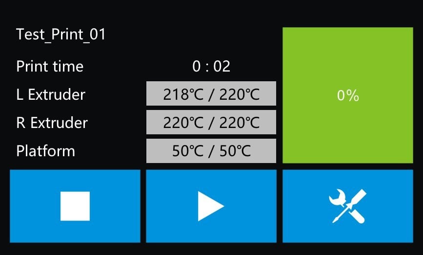 The printer is conveniently operated from a 3.5" color touch screen. Its interface makes visible every action and shows the printing status in real time.